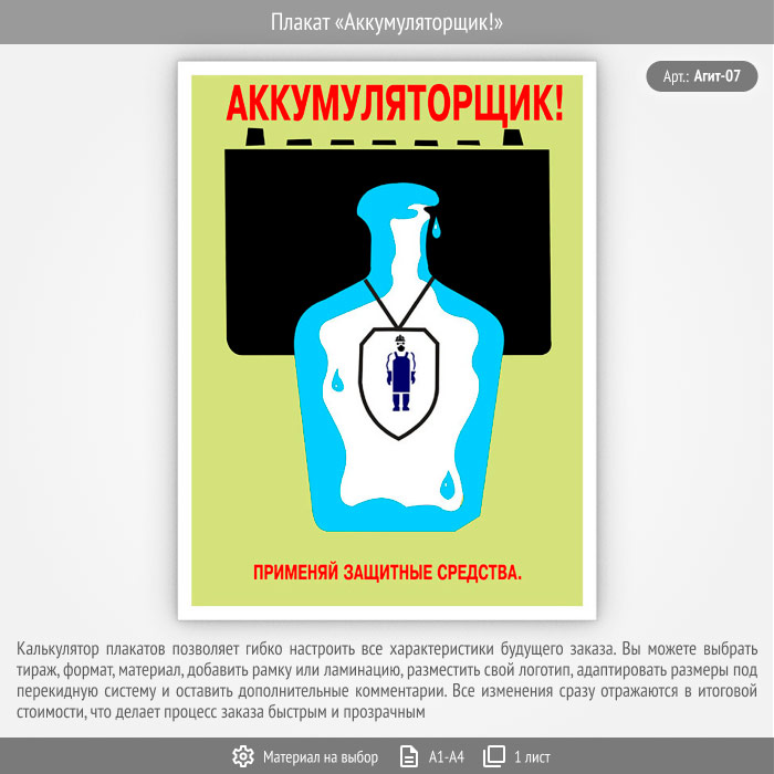 Плакат «Аккумуляторщик!» (Агит-07, 1 лист) в Уфе купить