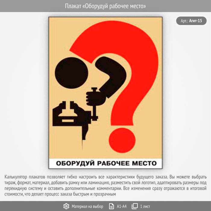 Плакат «Оборудуй рабочее место» (Агит-15, 1 лист) в Уфе купить