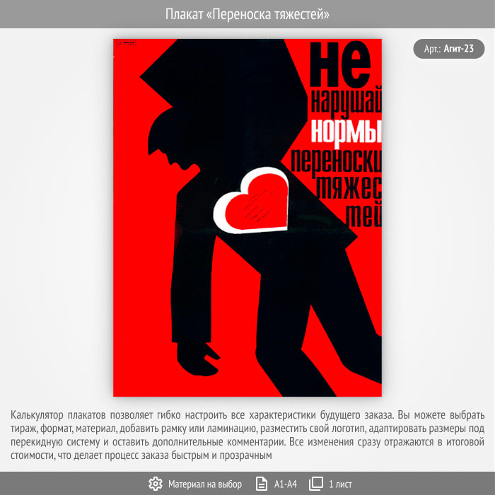 Плакат «Переноска тяжестей» (Агит-23, 1 лист) в Уфе купить