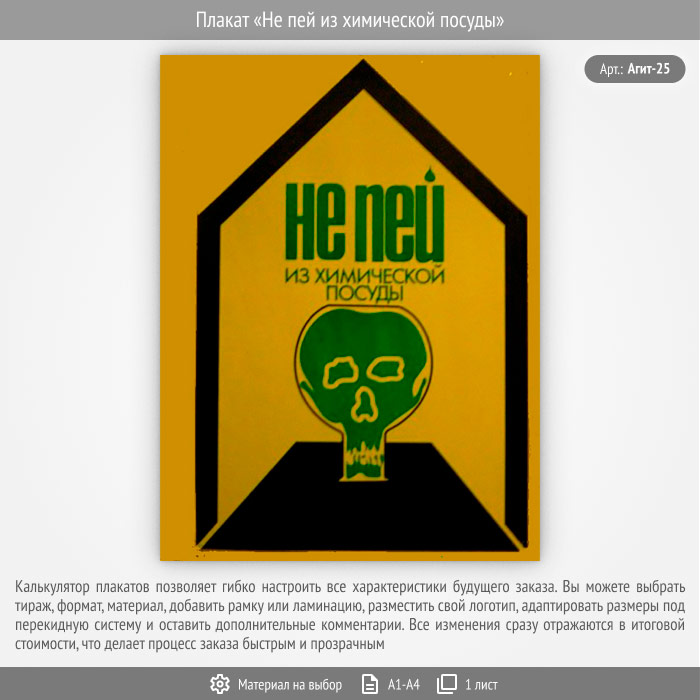 Плакат «Не пей из химической посуды» (Агит-25, 1 лист) в Уфе купить