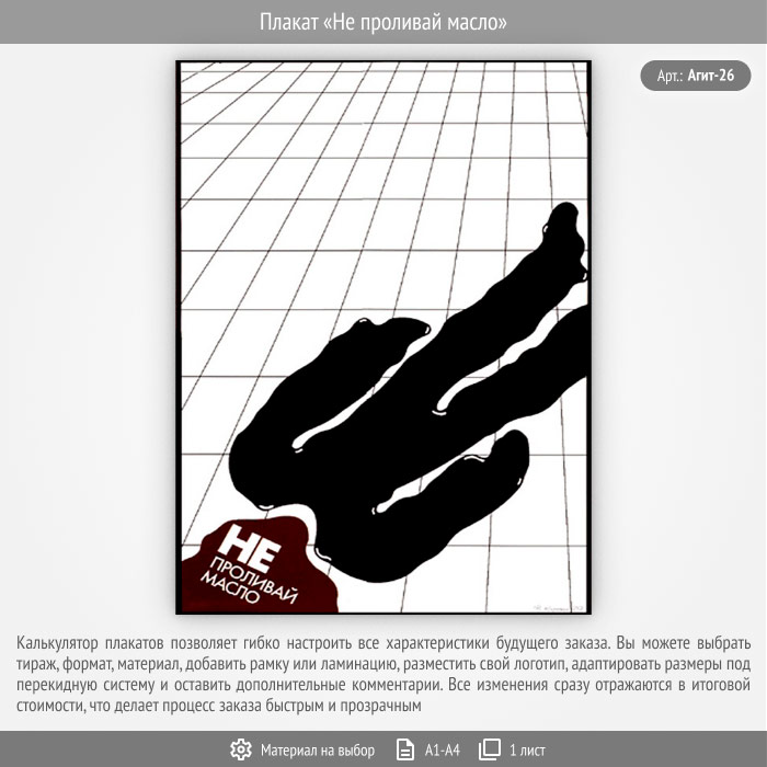 Плакат «Не проливай масло» (Агит-26, 1 лист) в Уфе купить