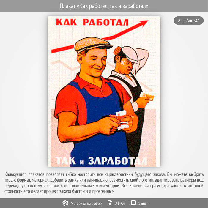 Плакат «Как работал, так и заработал» (Агит-27, 1 лист) в Уфе купить