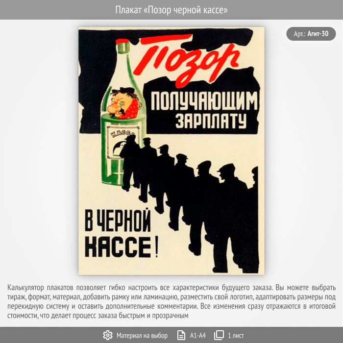 Плакат «Позор черной кассе» (Агит-30, 1 лист) в Уфе купить