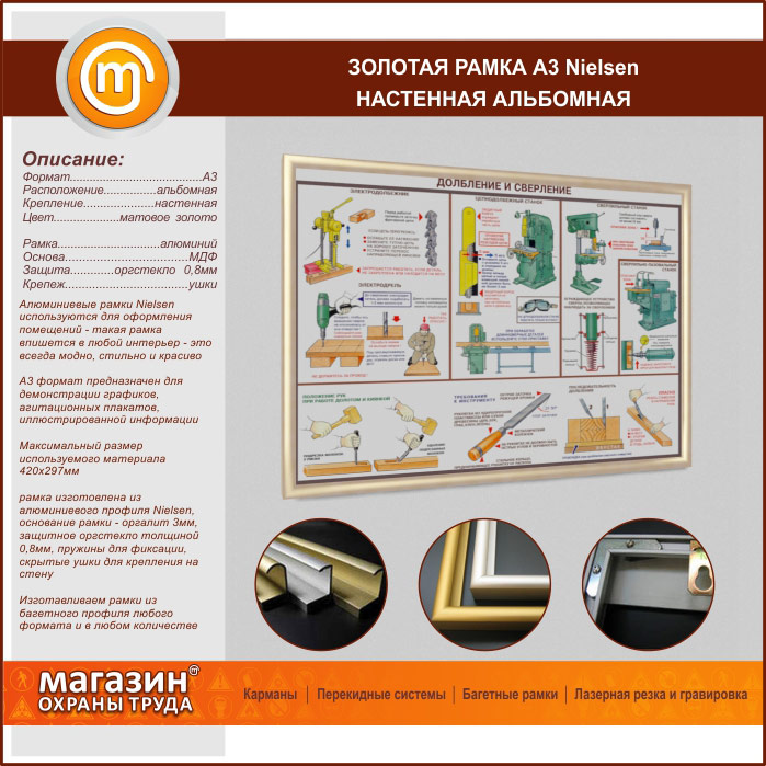 Багетная настенная рамка «Nielsen» А3 формата, альбомная, матовое золото в Уфе купить