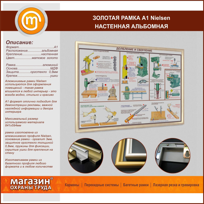 Багетная настенная рамка «Nielsen» А1 формата, альбомная, матовое золото в Уфе купить