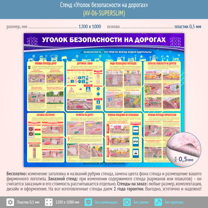 Стенд «Уголок безопасности на дорогах» (AV-06-SUPERSLIM) в Уфе купить