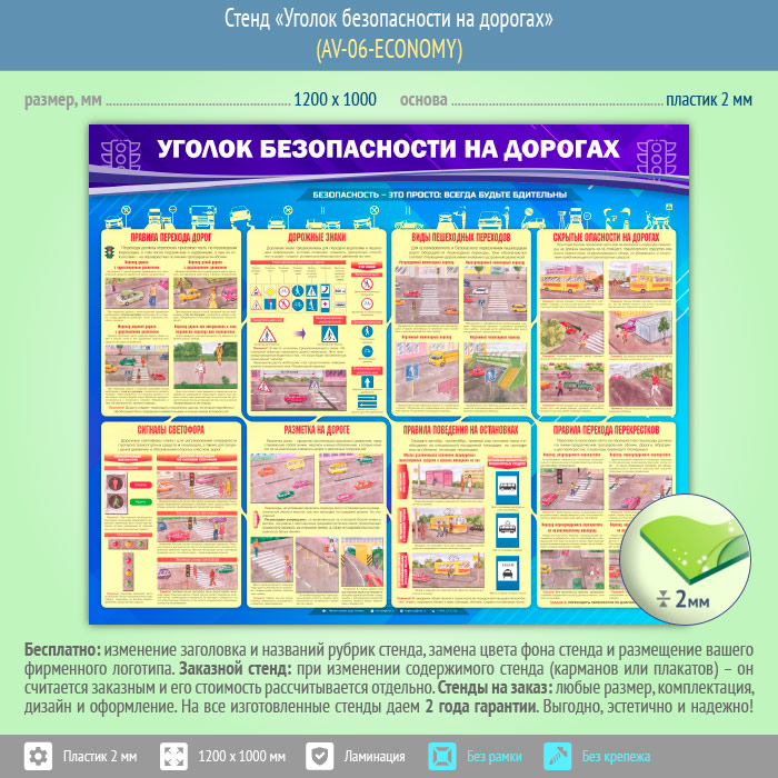 Стенд «Уголок безопасности на дорогах» (AV-06-ECONOMY) в Уфе купить