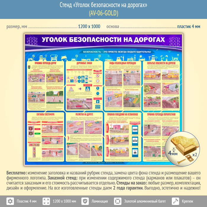 Стенд «Уголок безопасности на дорогах» (AV-06-GOLD) в Уфе купить