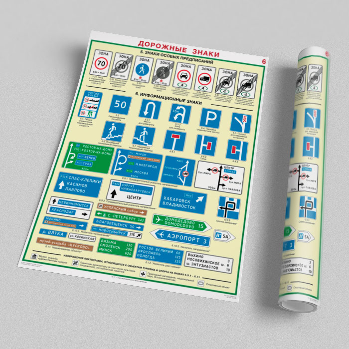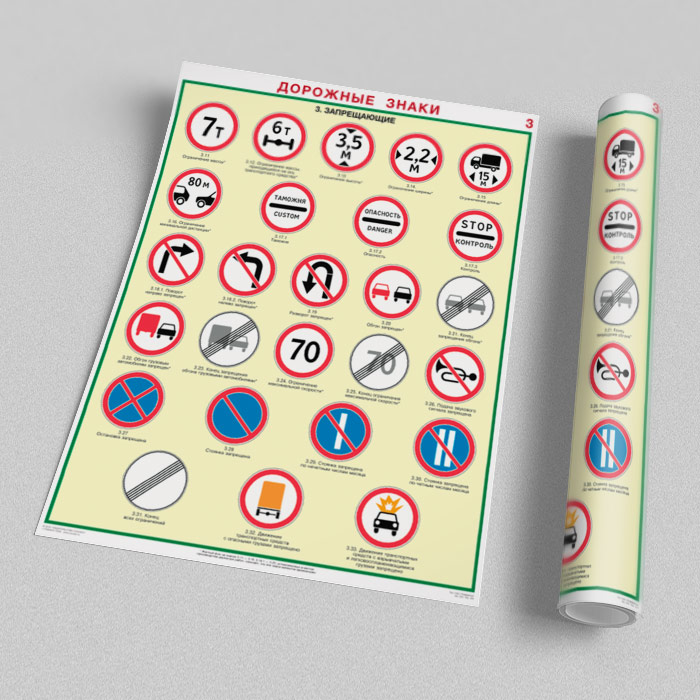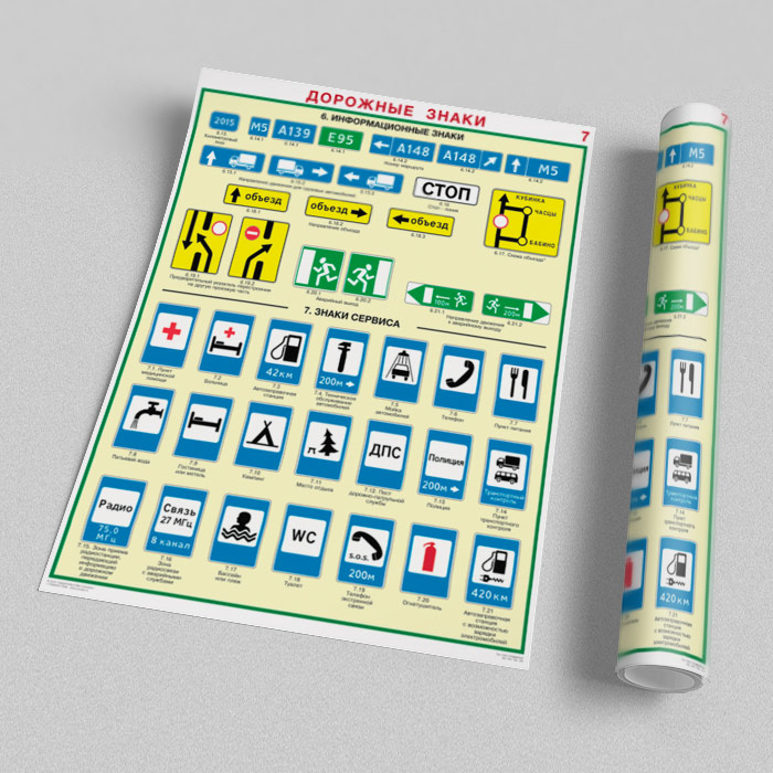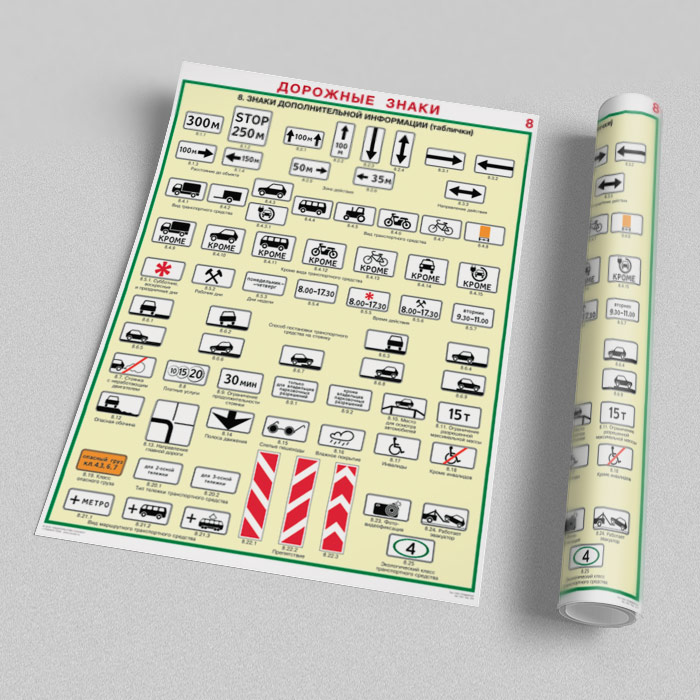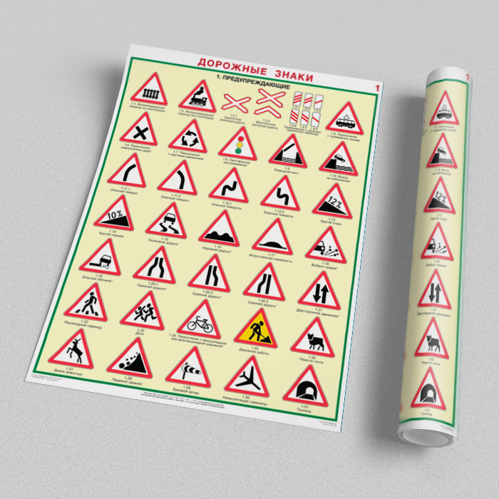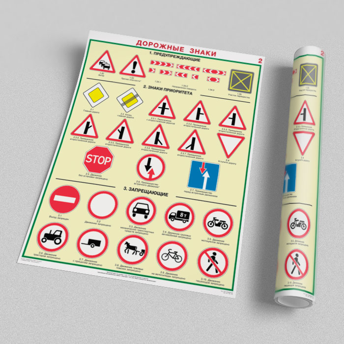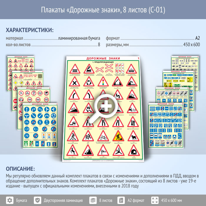 Плакаты «Дорожные знаки» (С-01, ламинированная бумага, А2, 8 листов) в Уфе купить