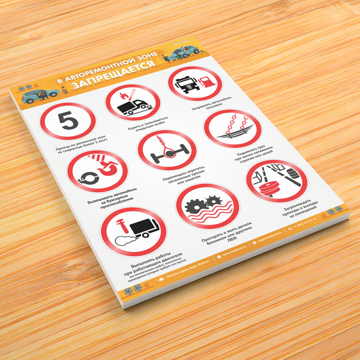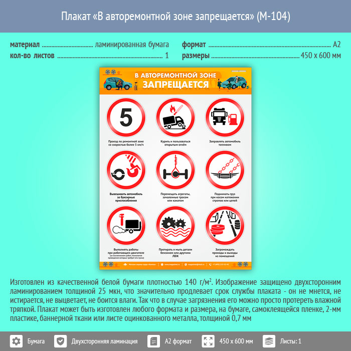 Плакат «В авторемонтной зоне запрещается» (М-104, ламинированная бумага, А2, 1 лист) в Уфе купить