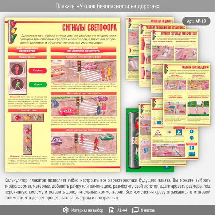 Плакаты «Уголок безопасности на дорогах» (АР-10, 8 листов) в Уфе купить