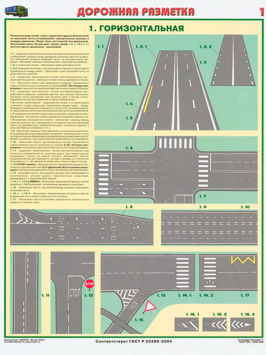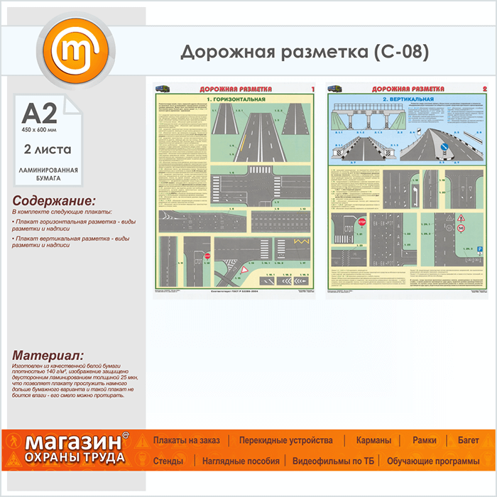 Плакаты «Дорожная разметка» (С-08, ламинированная бумага, А2, 2 листа) в Уфе купить