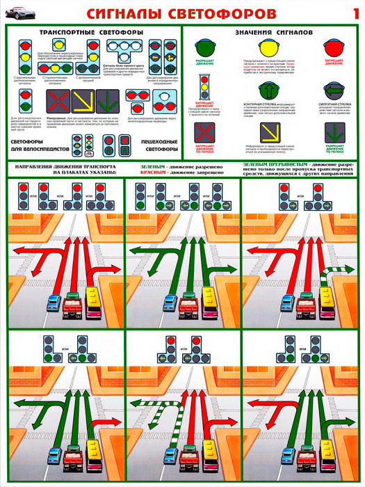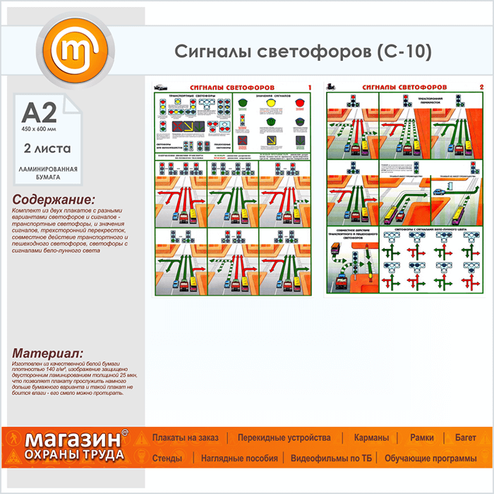 Плакаты «Сигналы светофоров» (С-10, ламинированная бумага, А2, 2 листа) в Уфе купить