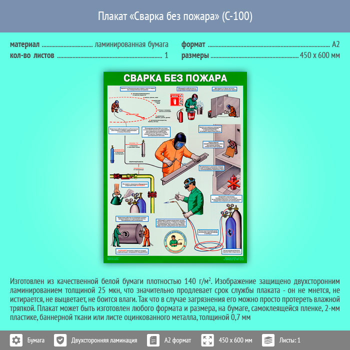 Плакат «Сварка без пожара» (С-100, ламинированная бумага, А2, 1 лист) в Уфе купить
