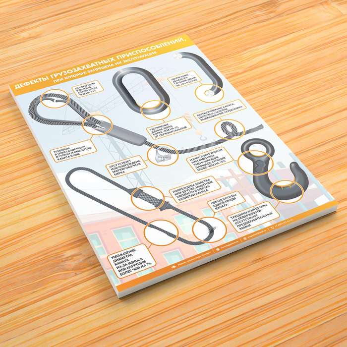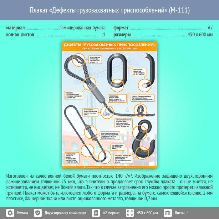 Плакат «Дефекты грузозахватных приспособлений» (М-111, ламинированная бумага, А2, 1 лист) в Уфе купить