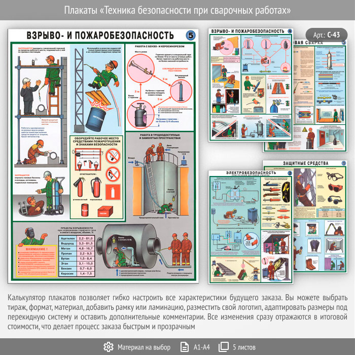 Плакаты «Техника безопасности при сварочных работах» (С-43, 5 листов) в Уфе купить