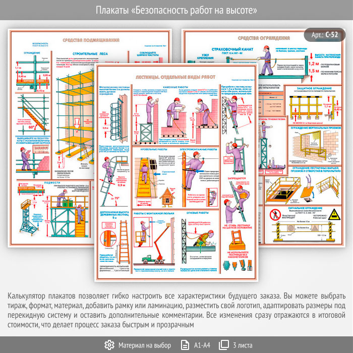 Плакаты «Безопасность работ на высоте» (С-52, 3 листа) в Уфе купить