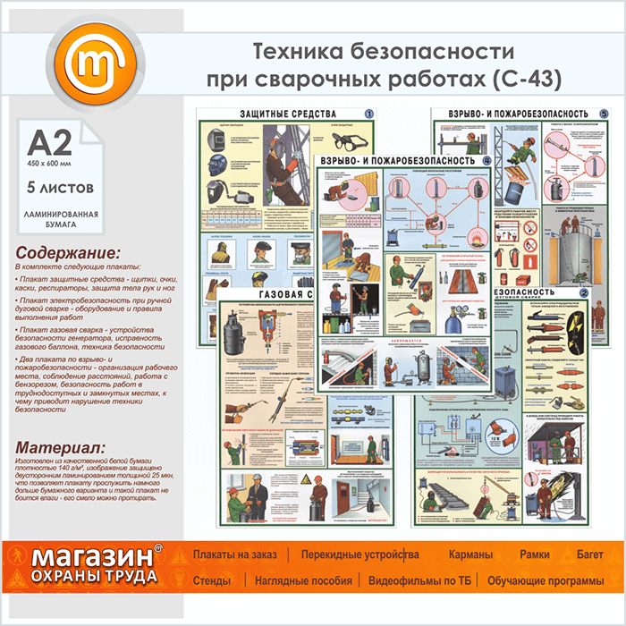 Плакаты «Техника безопасности при сварочных работах» (С-43, ламинированная бумага, А2, 5 листов) в Уфе купить