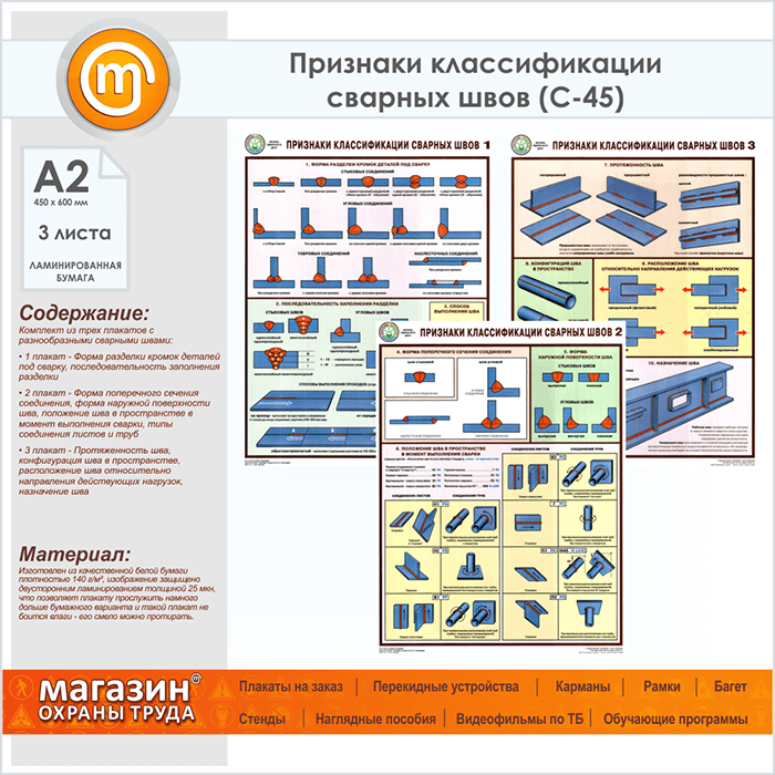 Плакаты «Признаки классификации сварных швов» (С-45, ламинированная бумага, А2, 3 листа) в Уфе купить