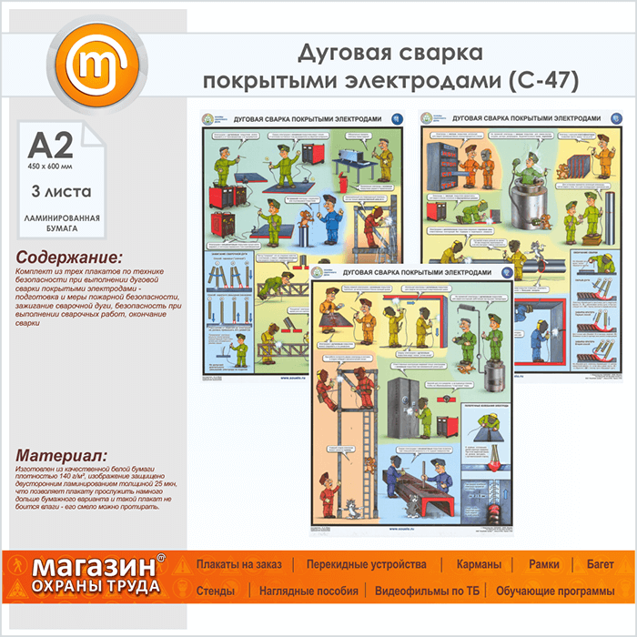 Плакаты «Дуговая сварка покрытыми электродами» (С-47, ламинированная бумага, А2, 3 листа) в Уфе купить