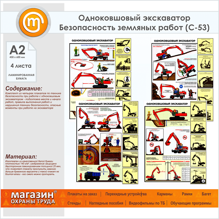 Плакаты «Одноковшовый экскаватор. Безопасность земляных работ» (С-53, ламинированная бумага, А2, 4 листа) в Уфе купить