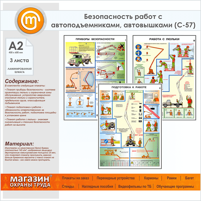 Плакаты «Безопасность работ с автоподъемниками, автовышками» (С-57, ламинированная бумага, А2, 3 листа) в Уфе купить