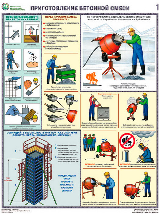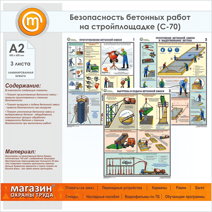 Плакаты «Безопасность бетонных работ на стройплощадке» (С-70, ламинированная бумага, А2, 3 листа) в Уфе купить