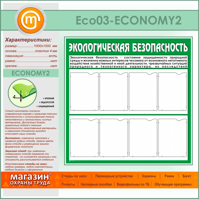 Стенд «Экологическая безопасность» с 8 карманами (ECO-03-ECONOMY2) в Уфе купить
