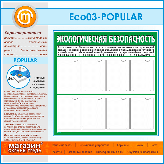 Стенд «Экологическая безопасность» с 8 карманами (ECO-03-POPULAR) в Уфе купить