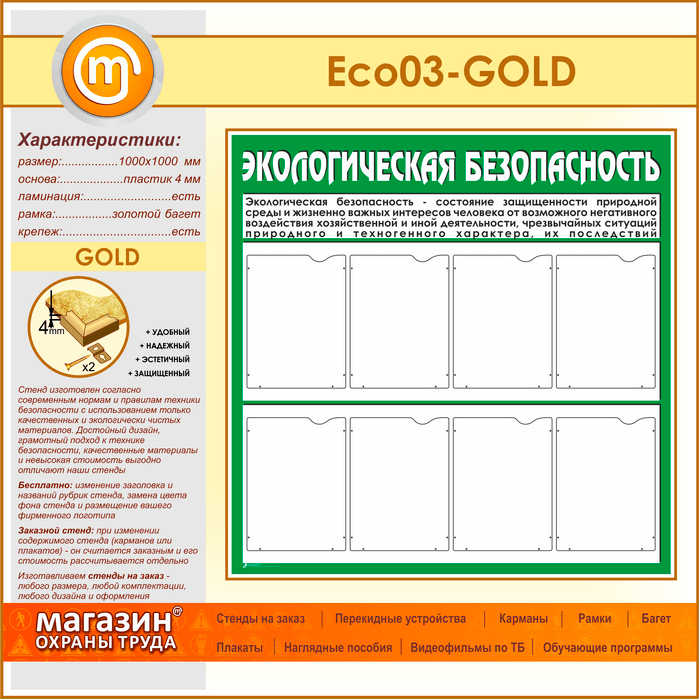 Стенд «Экологическая безопасность» с 8 карманами (ECO-03-GOLD) в Уфе купить