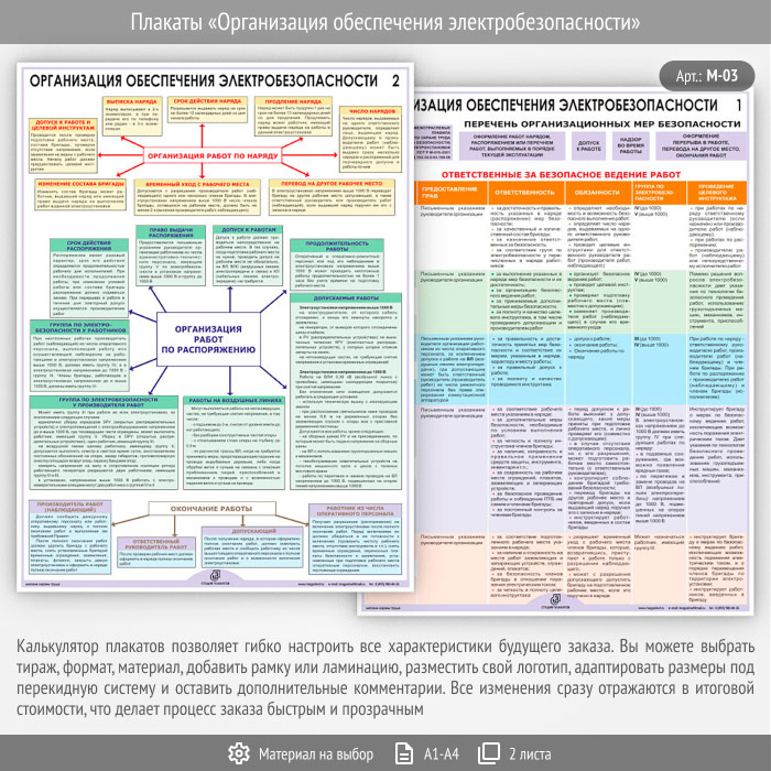 Плакаты «Организация обеспечения электробезопасности» (М-03, 2 листа) в Уфе купить