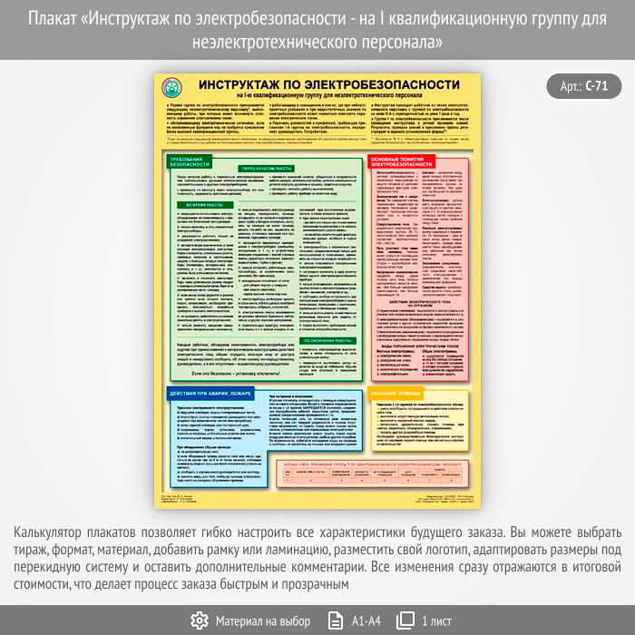 Плакат «Инструктаж по электробезопасности - на I квалификационную группу для неэлектротехнического персонала» (С-71, 1 лист) в Уфе купить