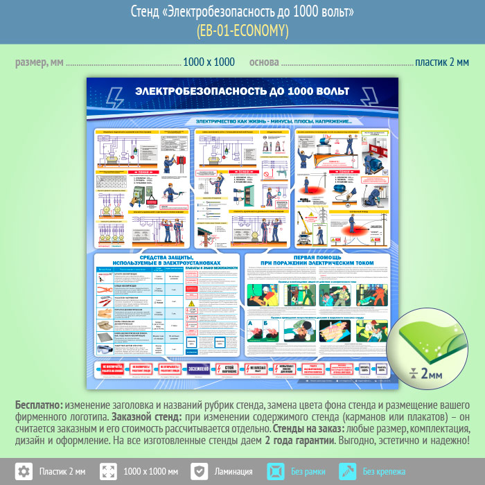 Стенд «Электробезопасность до 1000 вольт» (EB-01-ECONOMY) в Уфе купить