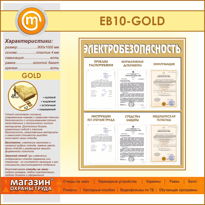 Стенд «Электробезопасность» с 6 карманами (EB-10-GOLD) в Уфе купить