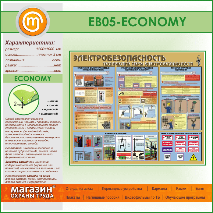 Стенд «Электробезопасность. Технические меры электробезопасности» (EB-05-ECONOMY) в Уфе купить