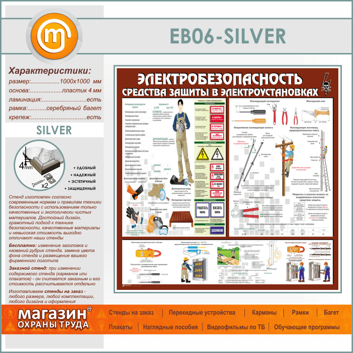 Стенд «Электробезопасность. Средства защиты в электроустановках» (EB-06-SILVER) в Уфе купить