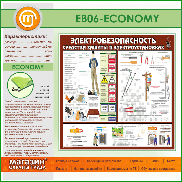 Стенд «Электробезопасность. Средства защиты в электроустановках» (EB-06-ECONOMY) в Уфе купить