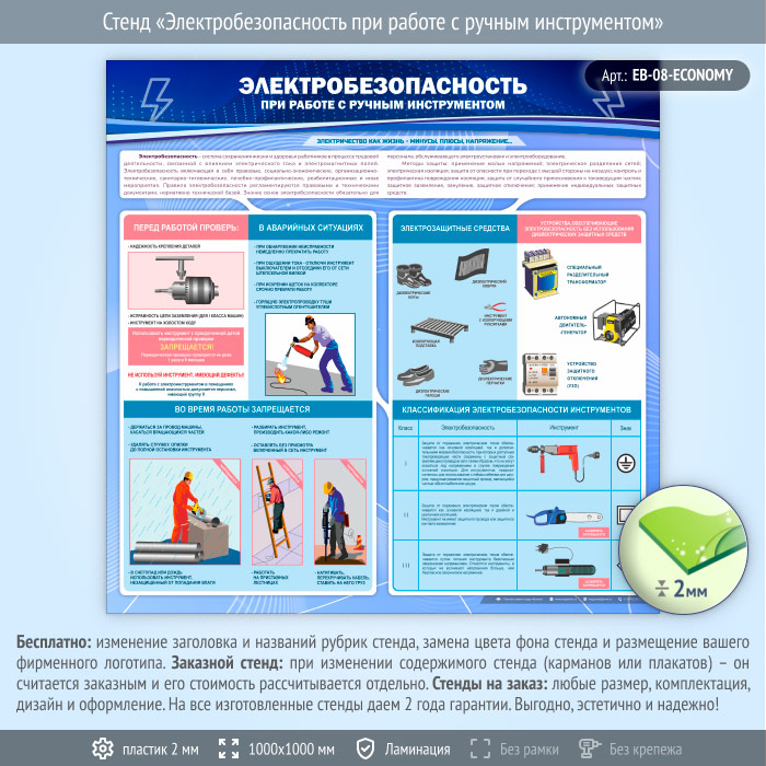 Стенд «Электробезопасность при работе с ручным инструментом» (EB-08-ECONOMY) в Уфе купить