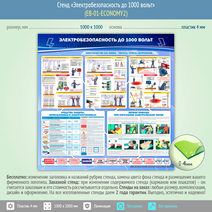 Стенд «Электробезопасность до 1000 вольт» (EB-01-ECONOMY2) в Уфе купить