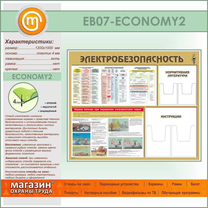 Стенд «Электробезопасность» с 4 объемными карманами (EB-07-ECONOMY2) в Уфе купить