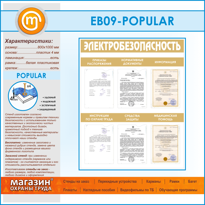 Стенд «Электробезопасность» с 6 карманами (EB-09-POPULAR) в Уфе купить