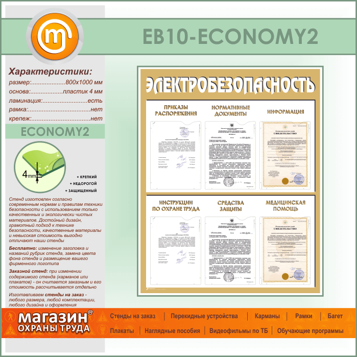 Стенд «Электробезопасность» с 6 карманами (EB-10-ECONOMY2) в Уфе купить