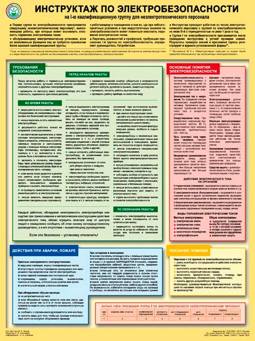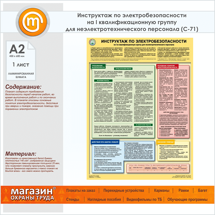 Плакат «Инструктаж по электробезопасности - на I квалификационную группу для неэлектротехнического персонала» (С-71, ламинированная бумага, А2, 1 лист) в Уфе купить