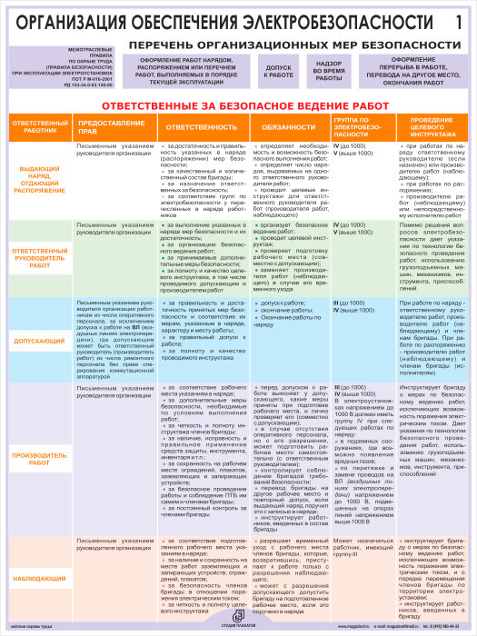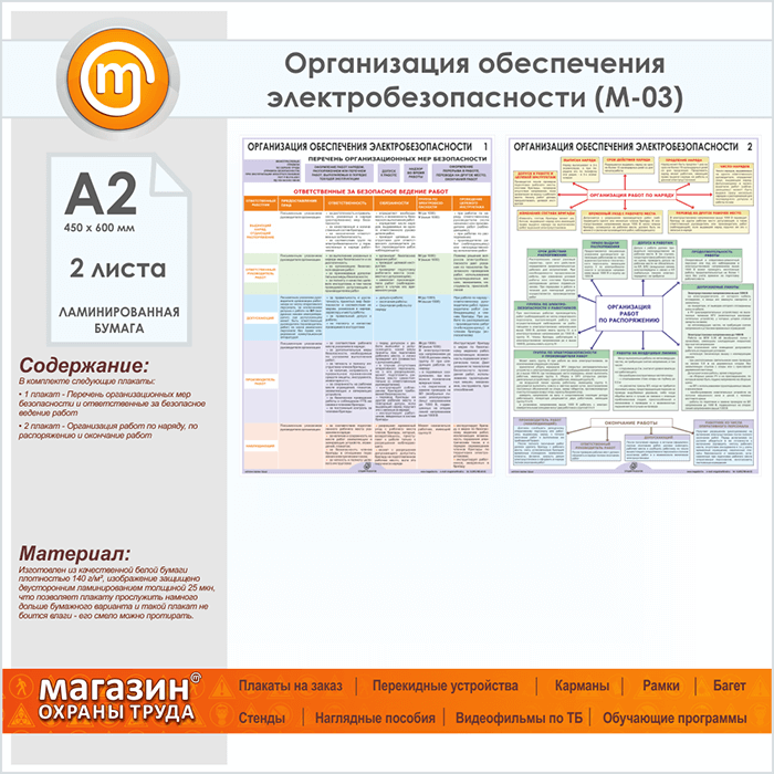 Плакаты «Организация обеспечения электробезопасности» (М-03, ламинированная бумага, А2, 2 листа) в Уфе купить
