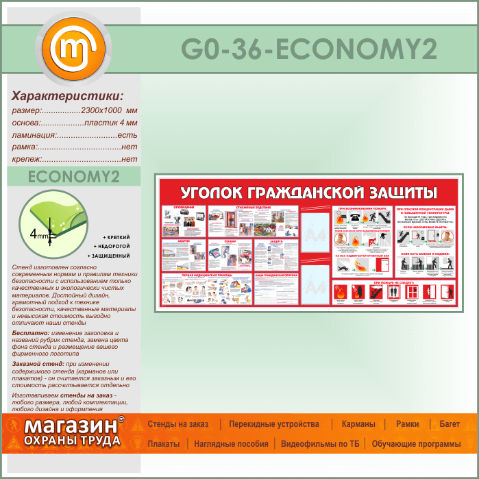 Стенд «Уголок гражданской защиты» c 2 карманами (GO-36-ECONOMY2) в Уфе купить