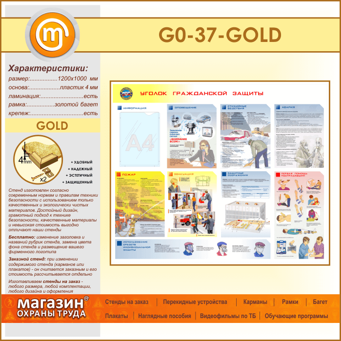 Стенд «Уголок гражданской защиты» с карманом (GO-37-GOLD) в Уфе купить