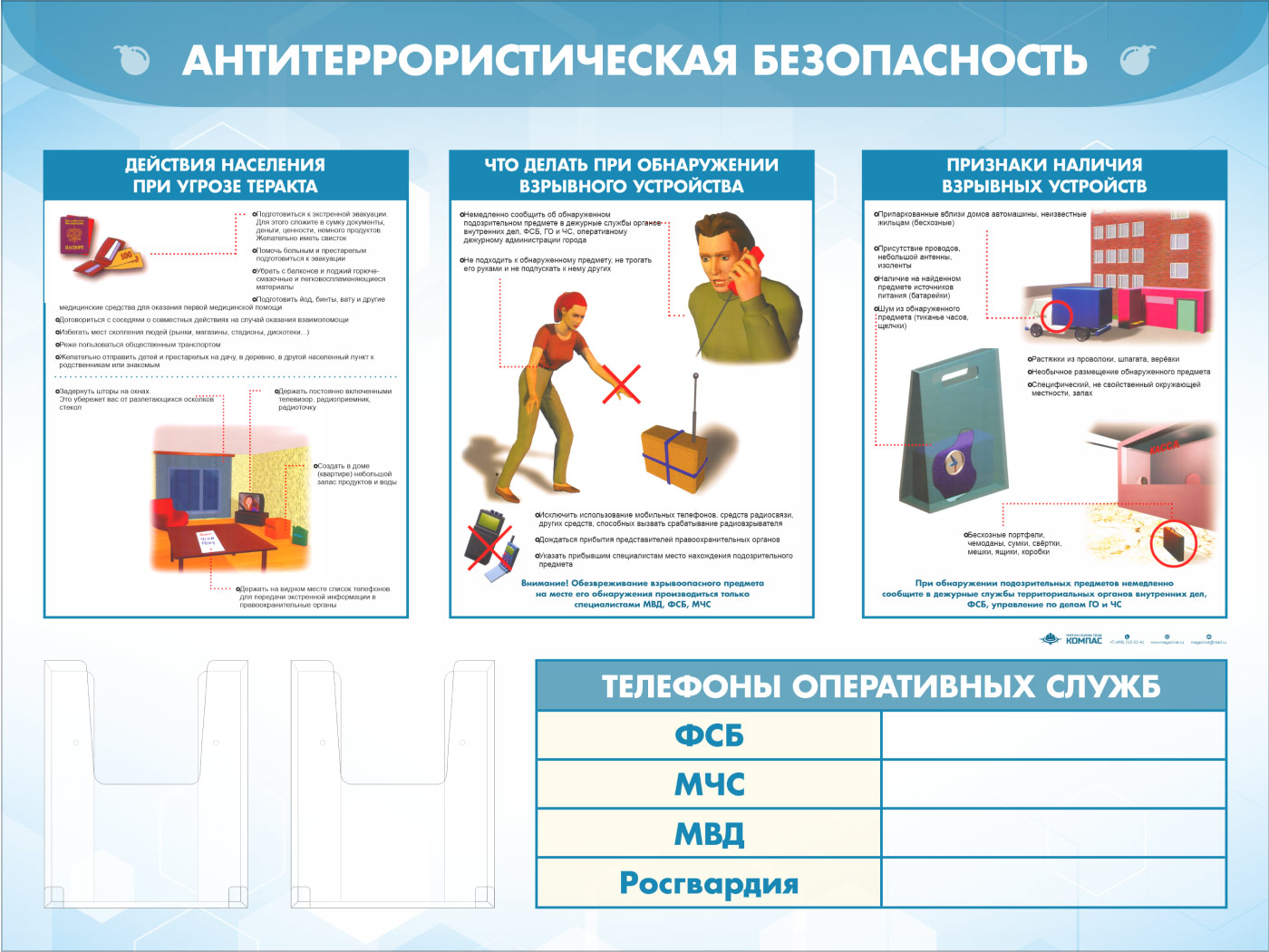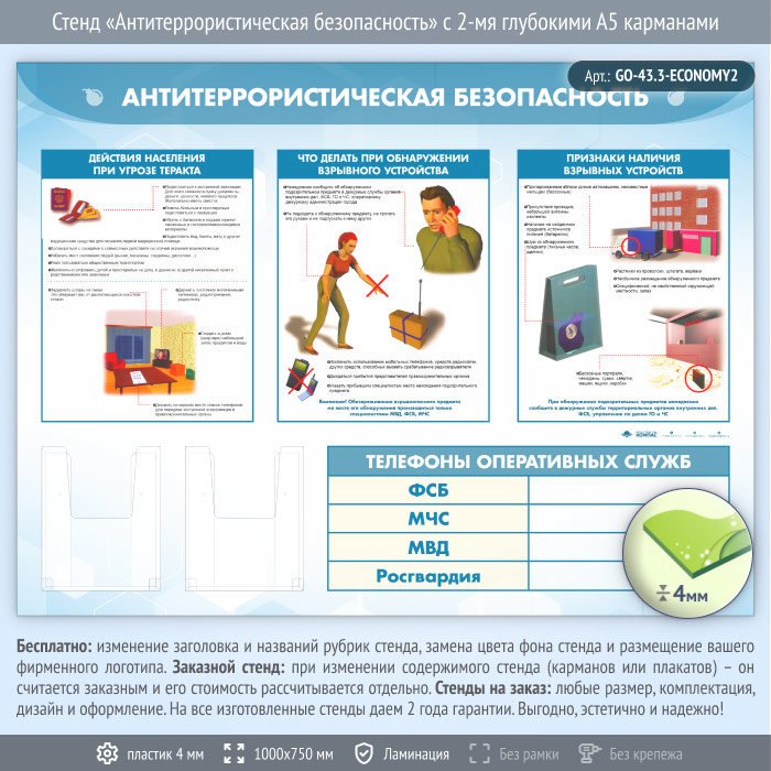Стенд «Антитеррористическая безопасность» с 2-мя глубокими А5 карманами (GO-43.3-ECONOMY2) в Уфе купить