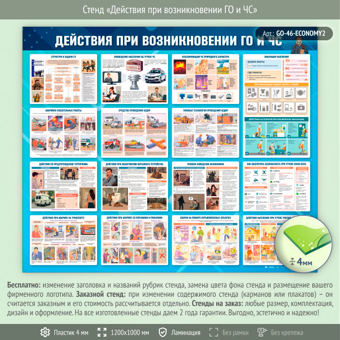 Стенд «Действия при возникновении ГО и ЧС» (GO-46-ECONOMY2) в Уфе купить