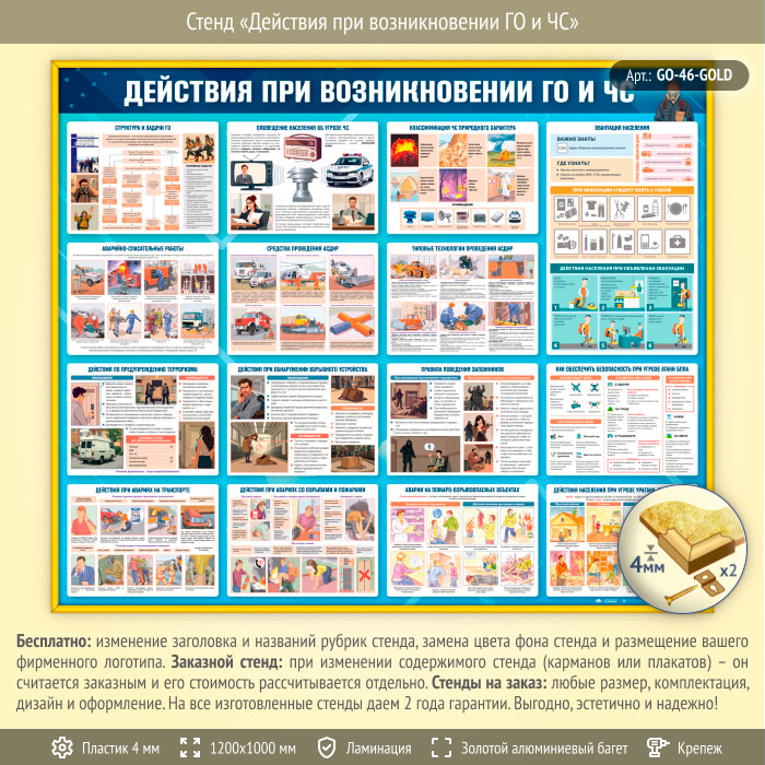 Стенд «Действия при возникновении ГО и ЧС» (GO-46-GOLD) в Уфе купить