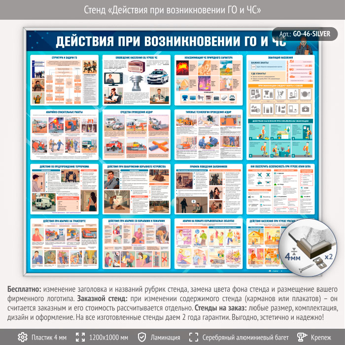 Стенд «Действия при возникновении ГО и ЧС» (GO-46-SILVER) в Уфе купить